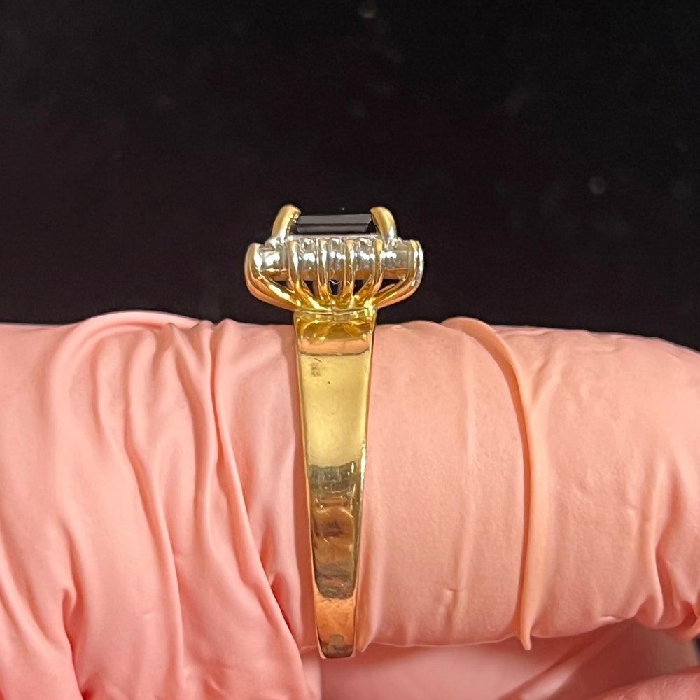 14k yellow gold, natural dark sapphire and diamonds, size 8 1/2, resizable for free, 3.6g