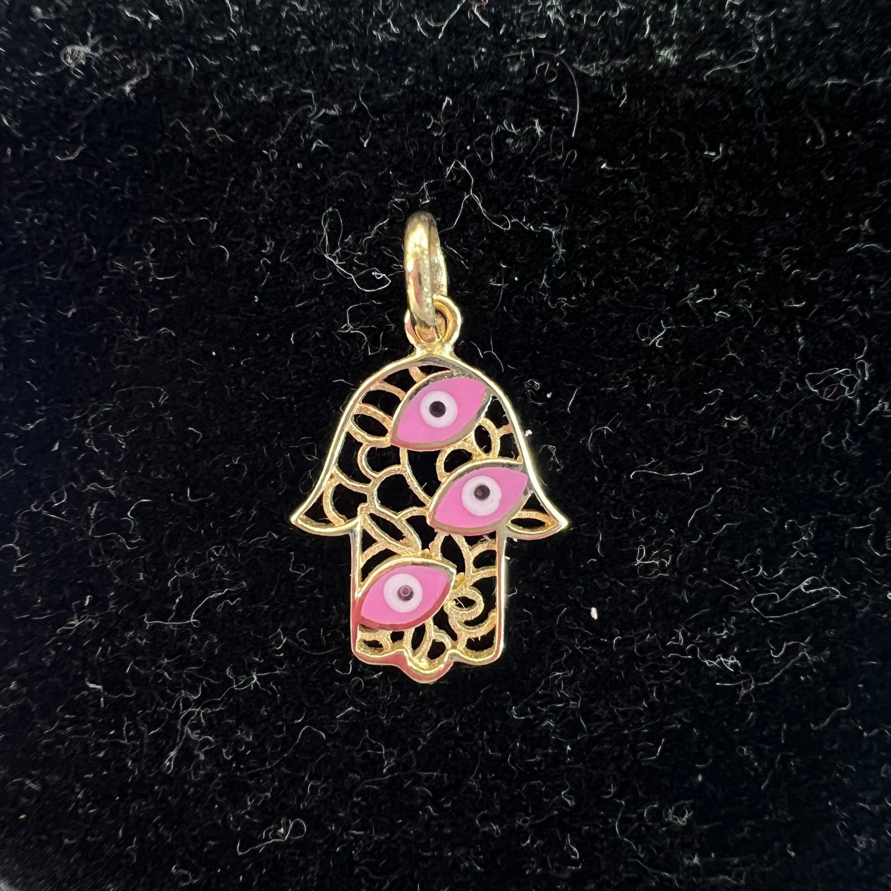 14k yellow gold, charm only, bubblegum pink, white, and black enamel (Measures 12.5mm wide, 20.7mm long with loop)