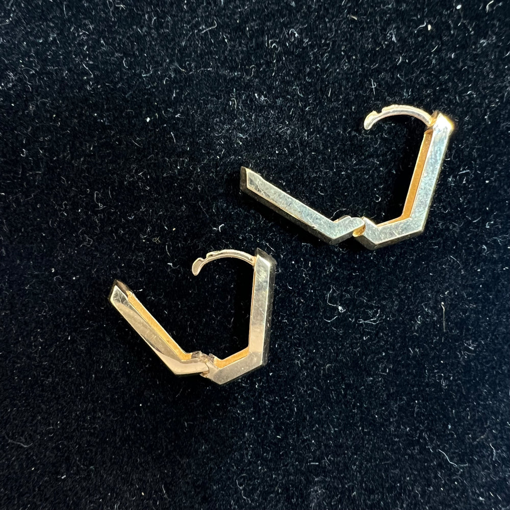 Such a chic, easy-to-wear 14k yellow gold Beveled Hoops in a unique U-shape! These have super secure, click-in huggie closures that give a seamless look to the earring from both the front and back. Beveled edges and high-polishing work together to shine and catch light from every angle. Additionally, these hoops are SOLID - not hollow! They are durable hoops you can wear for life. (Size: .50 x .40 inch L x W, Thickness: 3.3mm)