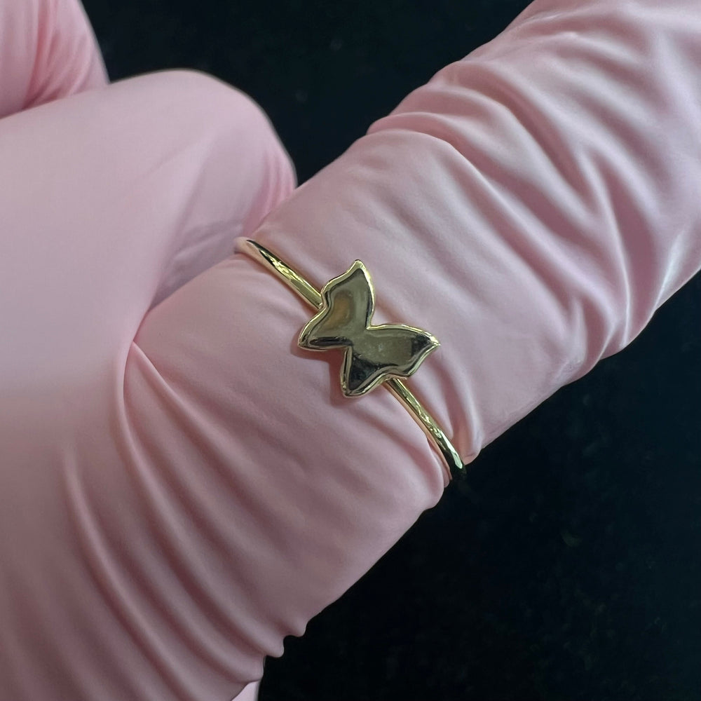 Who doesn’t love a girly butterfly ring? Especially a 14k yellow gold Dainty Butterfly Ring? Perfect to wear alone or with other rings, the butterfly is positioned on top of the ring in a low profile height. So shiny and cute!! (Ring Size: 6.5, resizable for FREE by request, Thickness: 1mm, Butterfly: .25 inch L x W)
