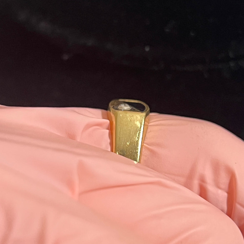 14k yellow gold, natural onyx and diamond, size 5 3/4, resizable for free, 2.5g