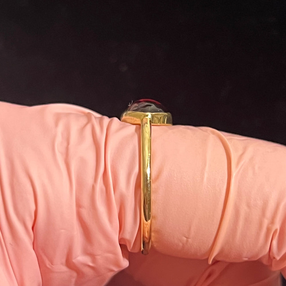 14k yellow gold, natural garnet cabochon, size 7, resizable for free, 1.1g