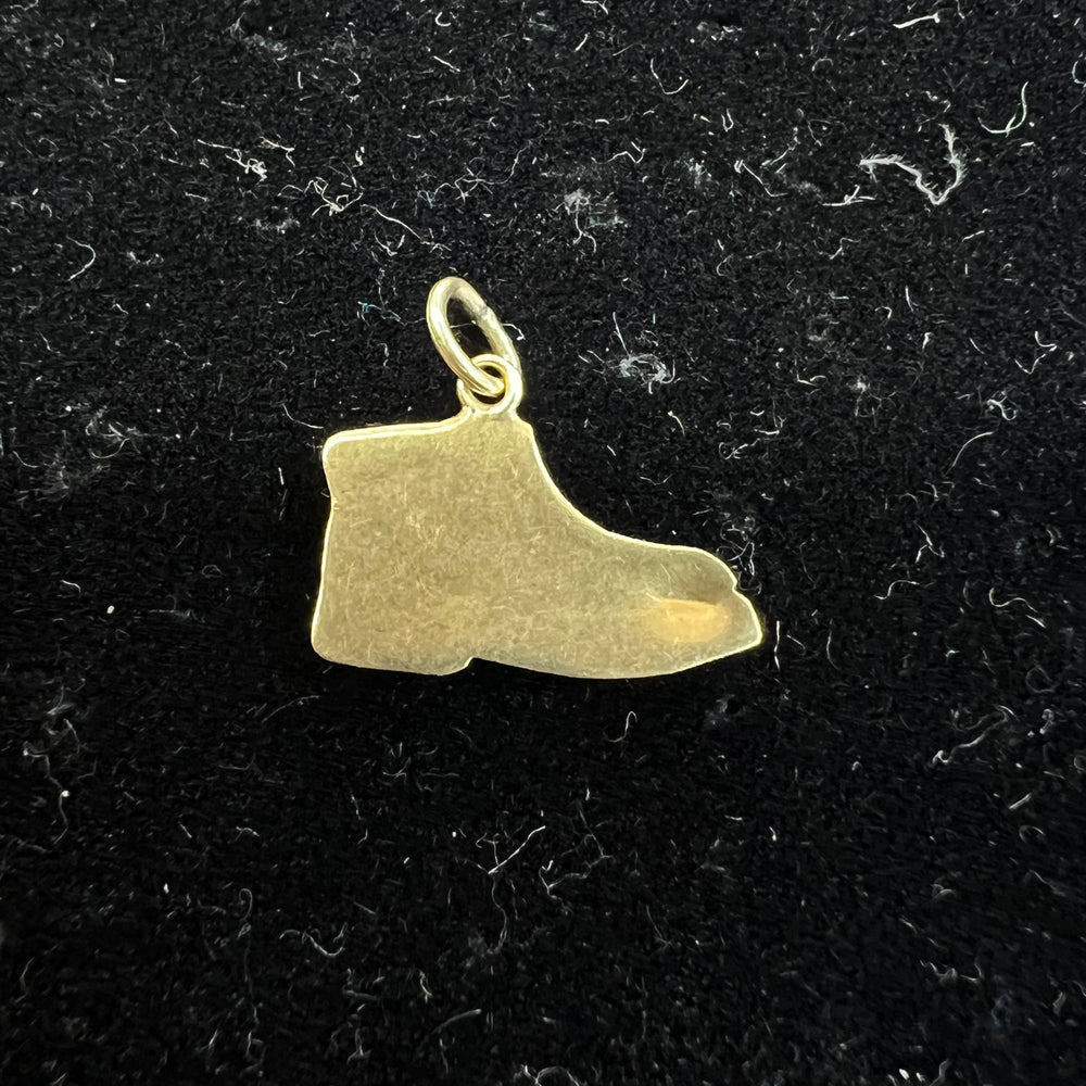 *PLEASE NOTE: There is a small dent on the back of the charm at the tip of the boot where the toes would be. This is a vintage charm so wear like that is normal, and fortunately it is on the back of the charm. The front has no issues - the gold is still not flimsy despite being puffed and is strong enough to wear. The price has been specially discounted to reflect this imperfection.