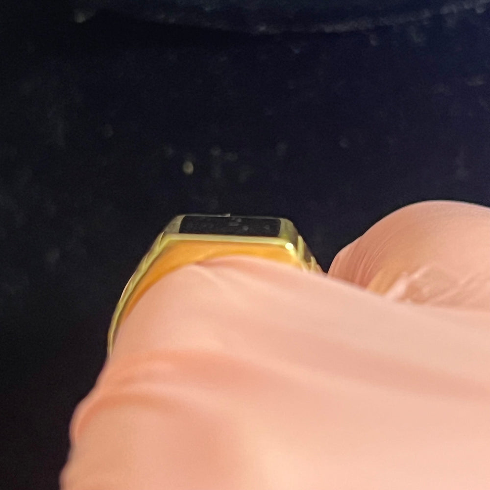 14k yellow gold, natural onyx, size 4, resizable for free, 2.4g