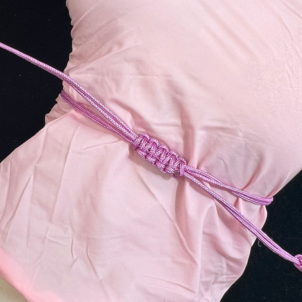 Tell me this isn’t the cutest bracelet you’ve ever seen?! 14k yellow gold mini Pink Flower Charm Bracelet with 14k yellow gold beads, on a soft, pink adjustable rope bracelet :)(Bracelet Length: up to 8 inches, Restringing available by request at a small fee. Flower Size: .25 inch)