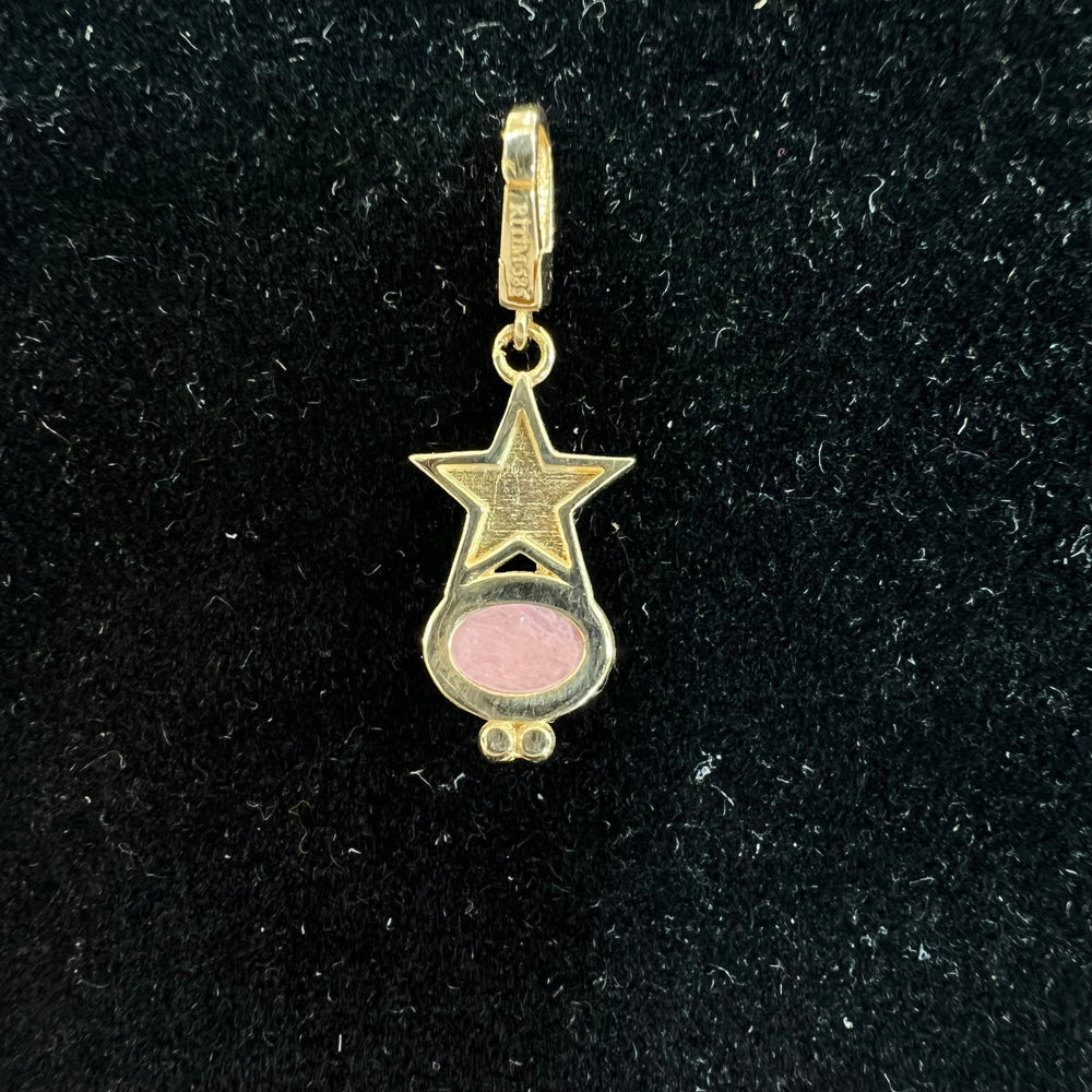 Why can’t I design charms like this?? If I wore jewelry I would be wearing this 14k yellow gold Pink Star Charm right now!! It’s super cute, light and easy to pair with any other charms! The cabochon stone is the absolute prettiest pink, pearlescent color - this is CZ but it was too beautiful to not buy. It is raised over the charm (half dome) making it a fun 3D piece (see pictures). This charm features a premium free-moving bail, you can either slide your chain through or actually clip this charm onto a link of necklace or bracelet! (Charm: .60 x .40 L x W, or 1 inch long with bail)