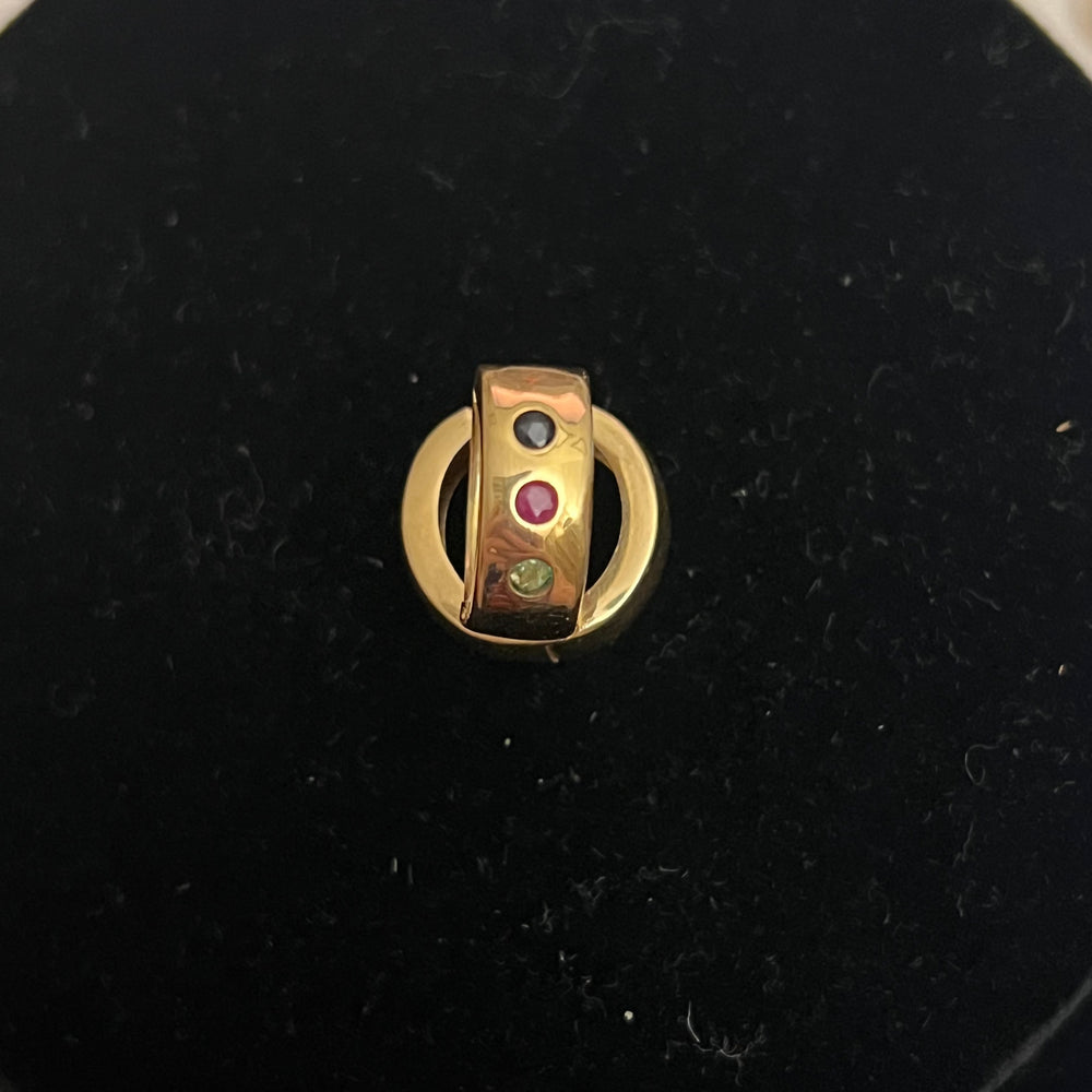 14k yellow gold, natural sapphire, ruby, and peridot, 3.2g