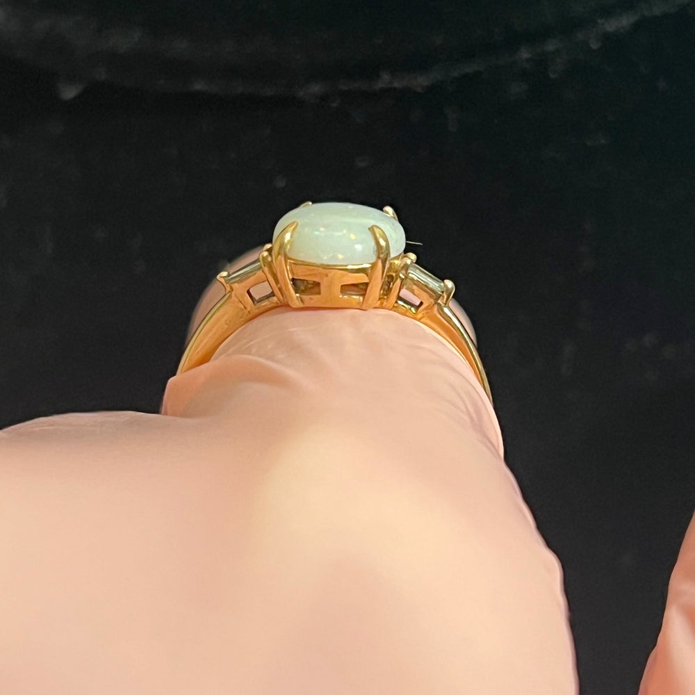 14k rose gold, natural moonstone and diamond, size 7, resizable for free, 2.7g
