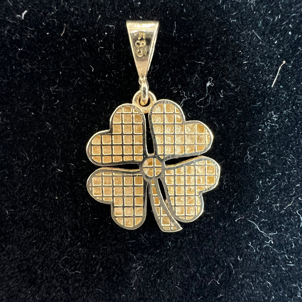 WOW this 14k yellow gold Clover Evil Eye Charm is insane!! It’s thick yet light (but not too light) and super comfortable to wear. Such a beautiful design, and well-crafted. (Size: .50 inch wide, .90 inch long with bail)