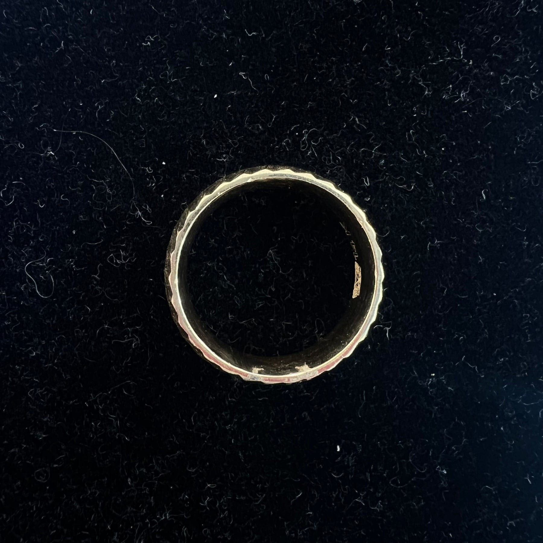 14k yellow gold (Size: fits snug 5.5-5.75, width 7.2mm, unable to be resized)