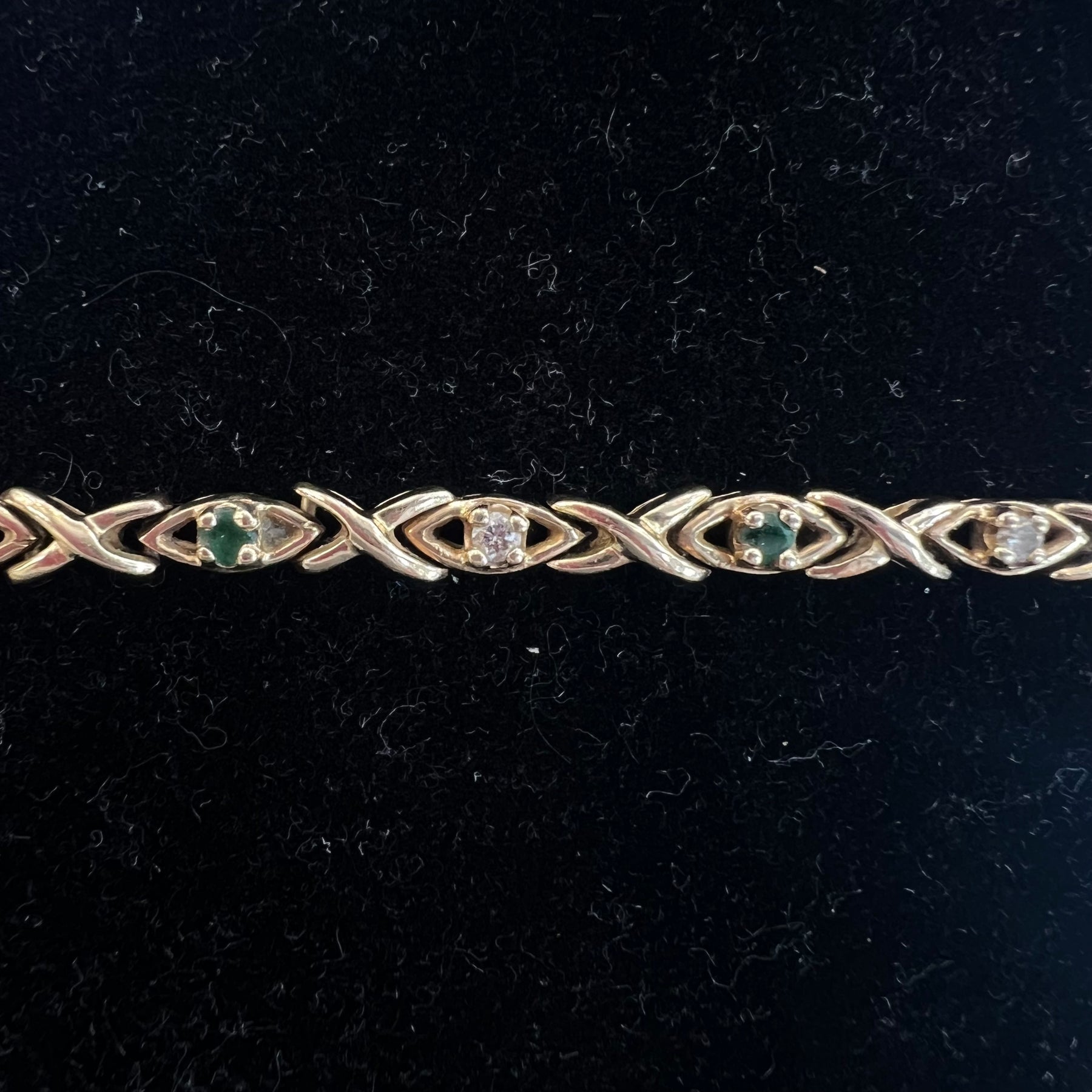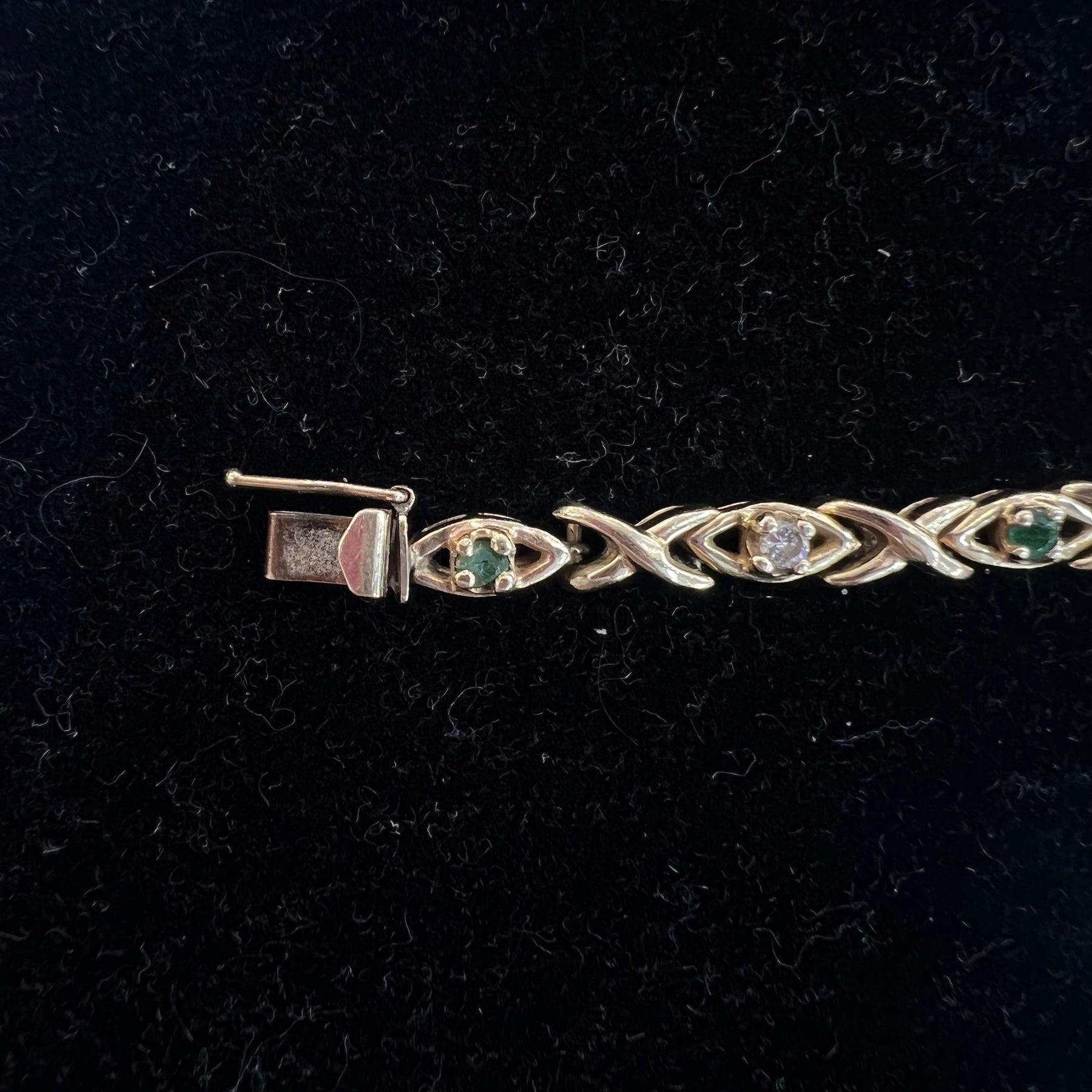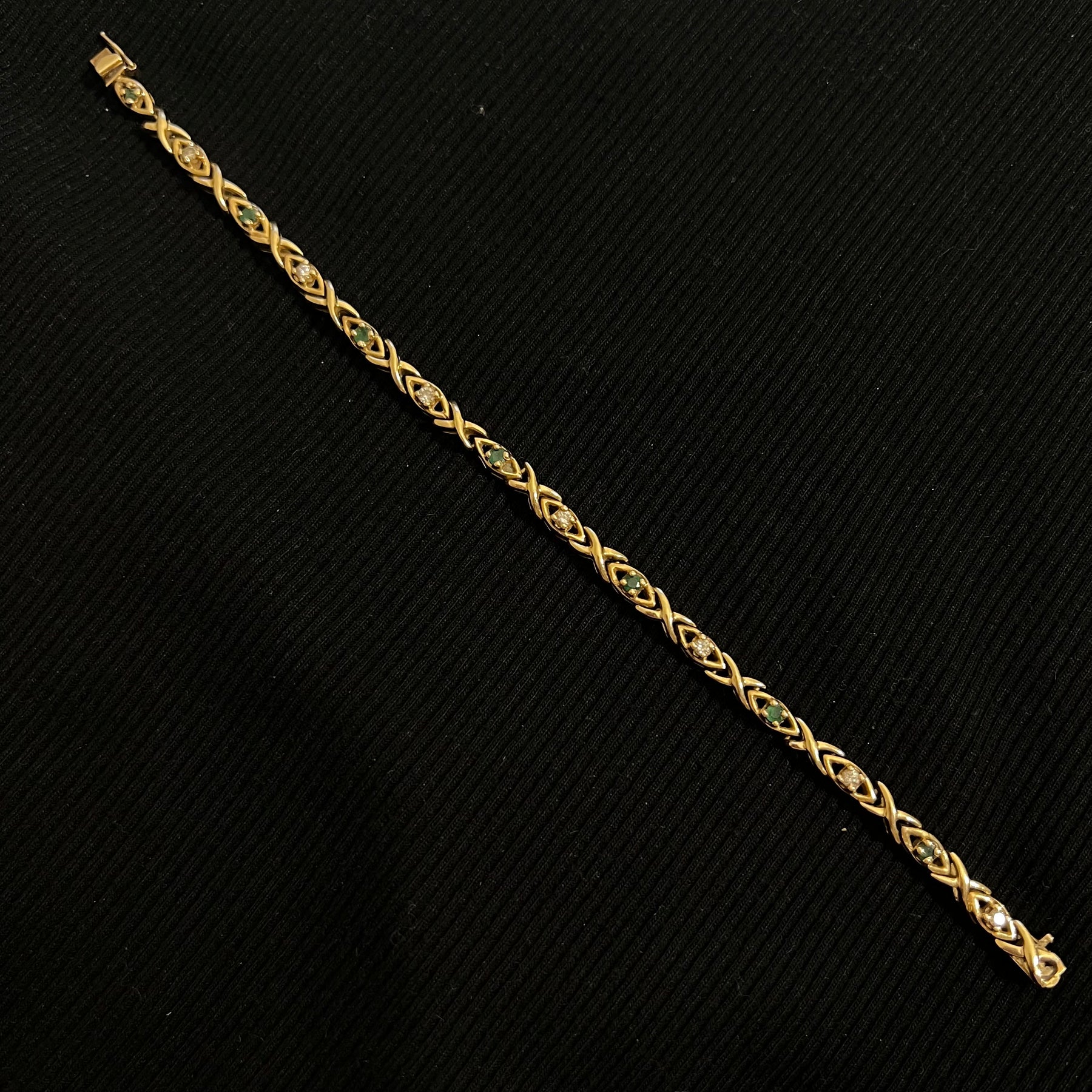 14k yellow gold, natural diamond and emerald stones (Size: 7", width 4.5mm, can be resized by request)