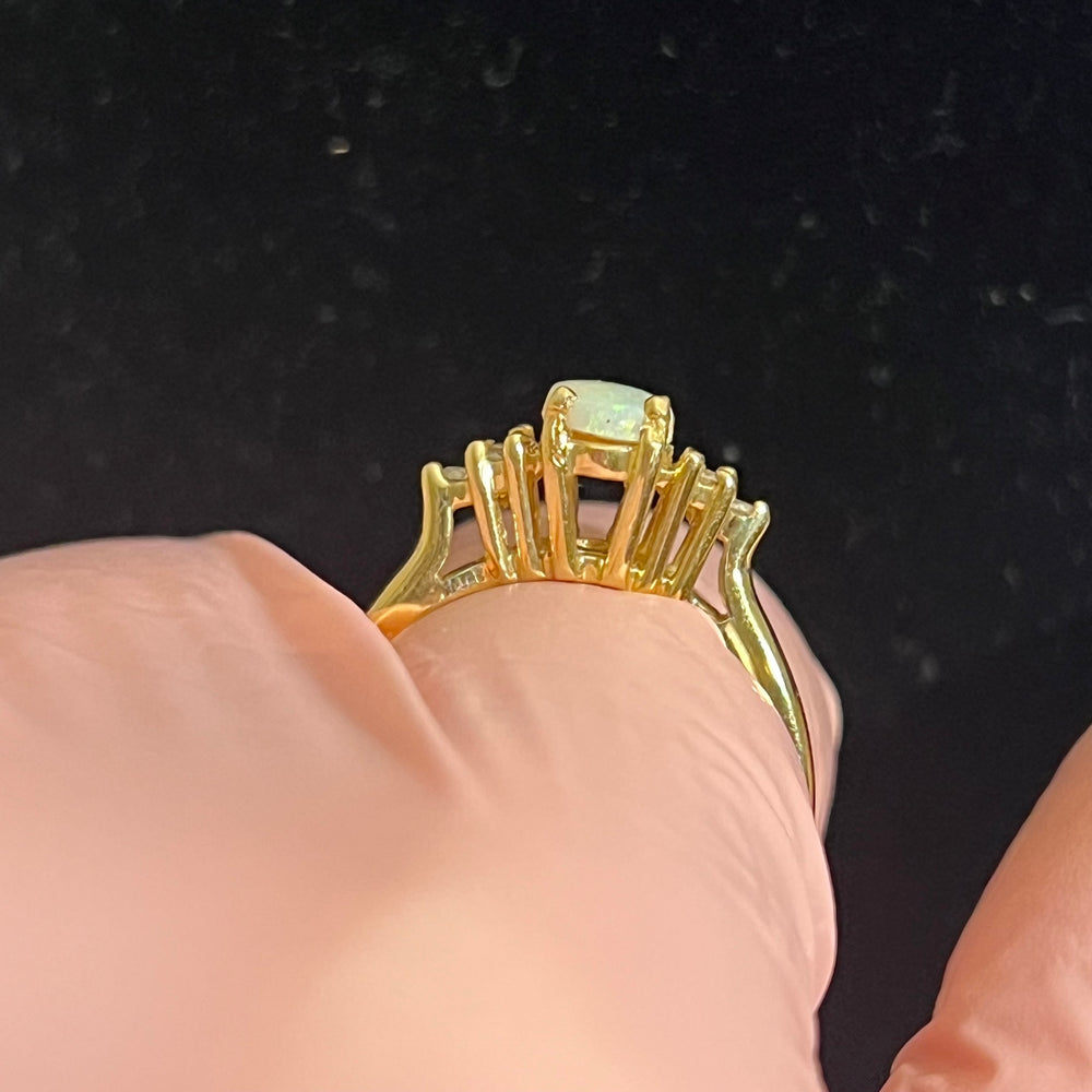 14k yellow gold, natural opal and diamonds, high-profile setting, size 6 1/2, resizing for free, 3.7g