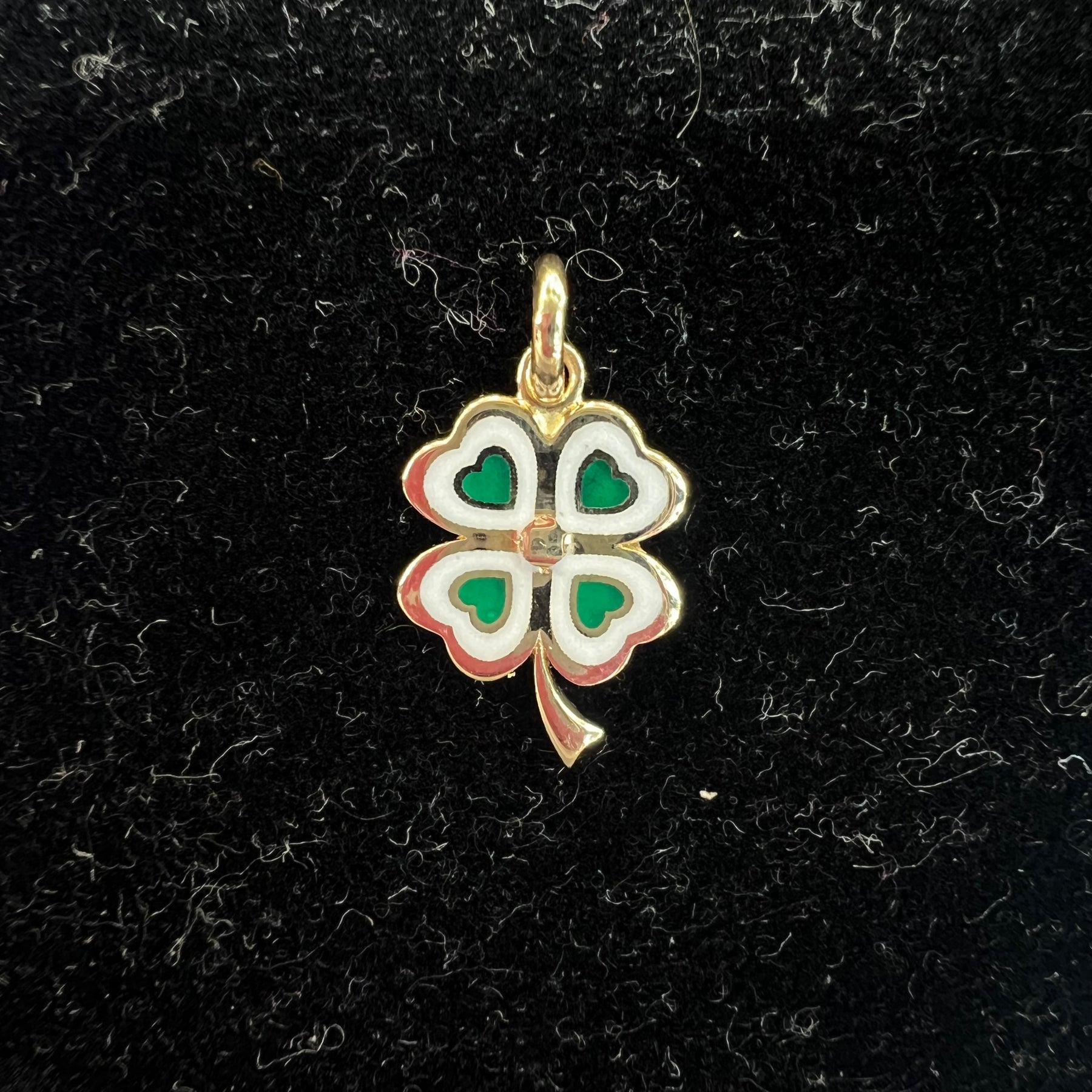 14k yellow gold, charm only, white and green enamel (Measures 10.4mm wide, 18.6mm long with loop)