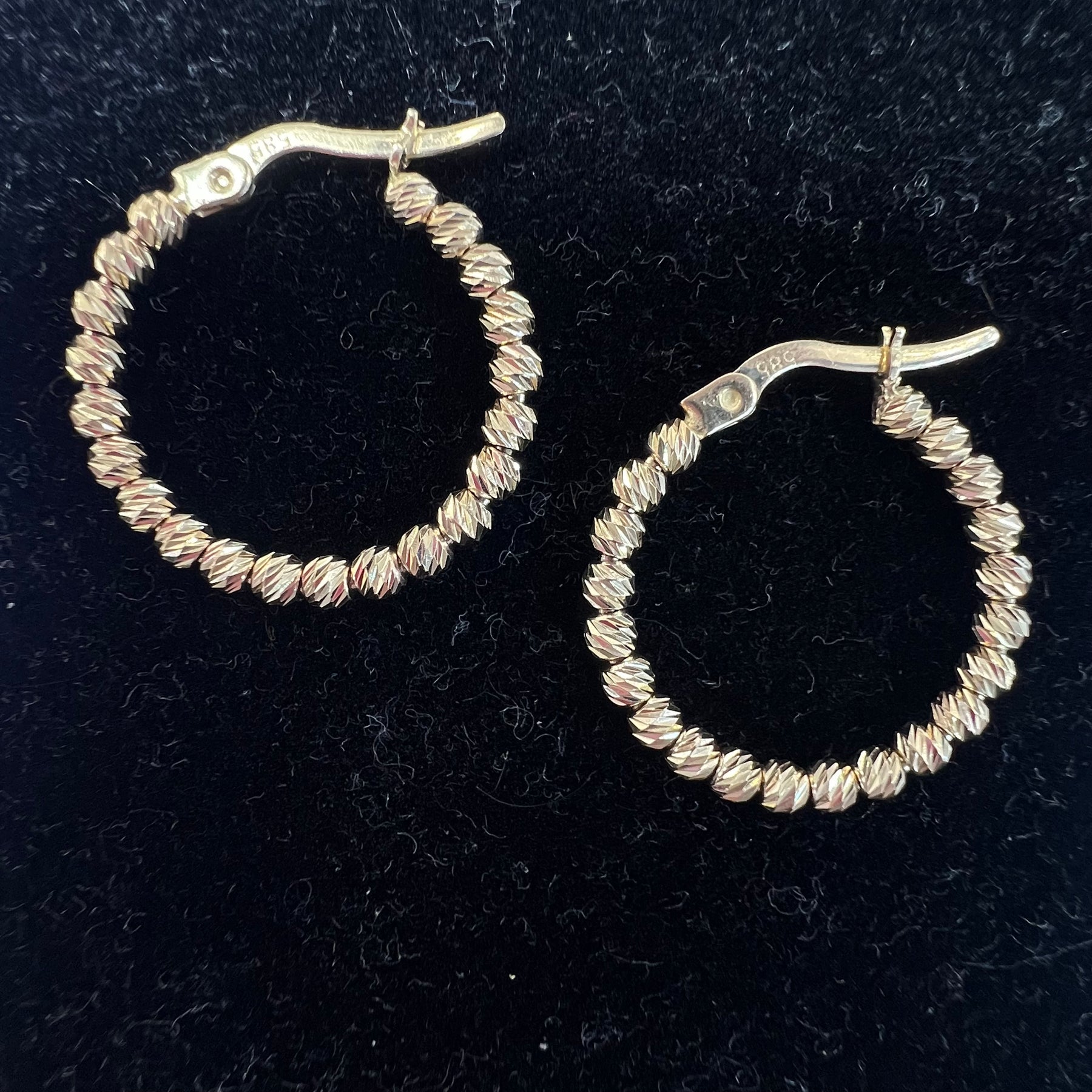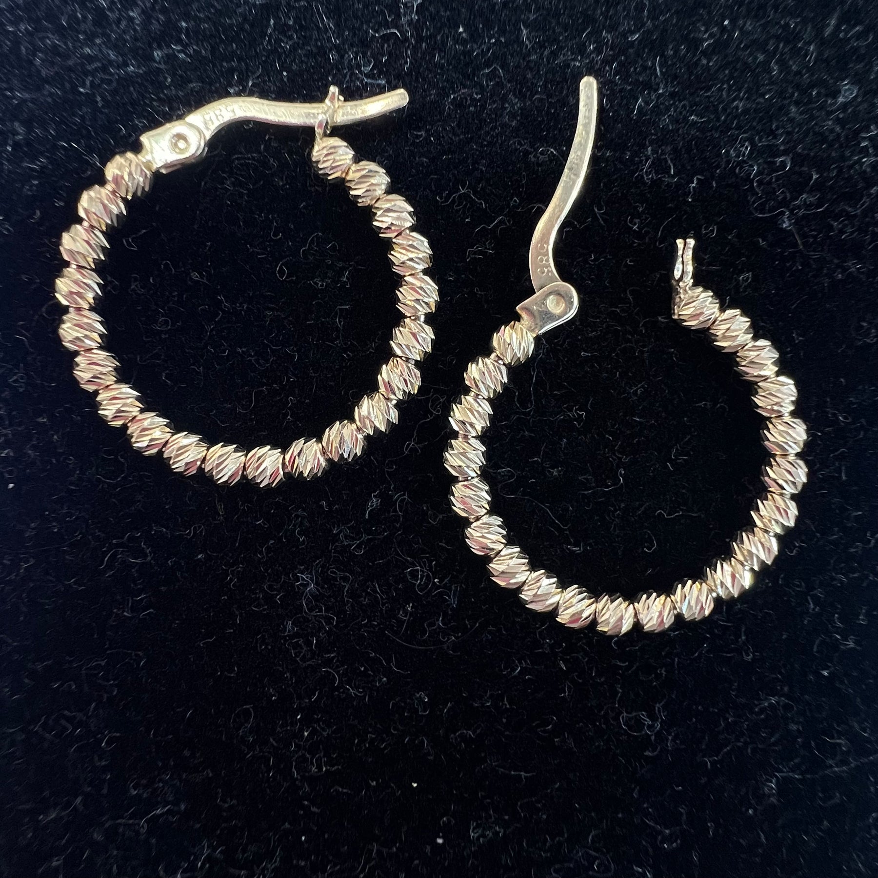 14k yellow gold large diamond cut beaded hoops (Measures 21.5mm wide, 22mm long, 2.5mm thick)