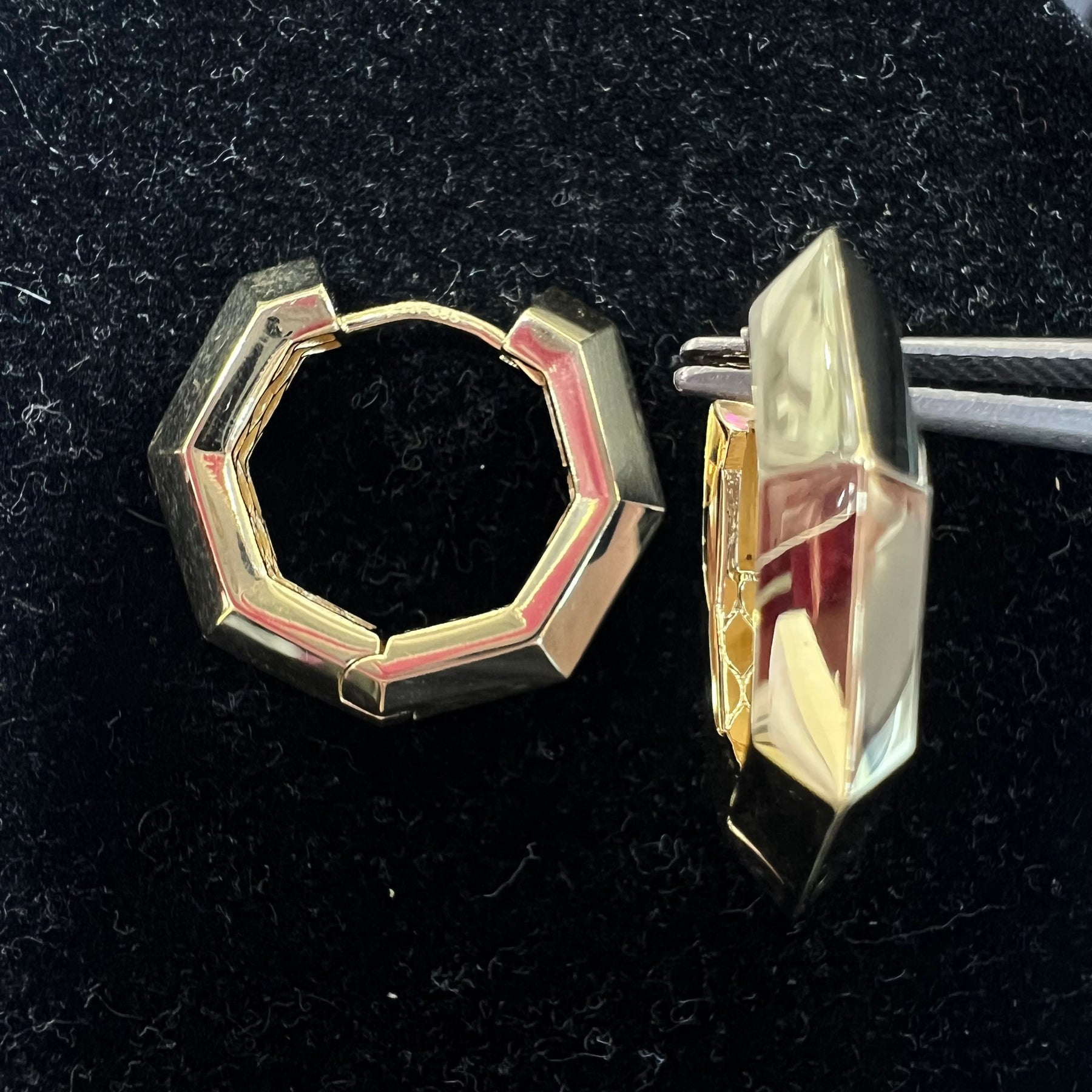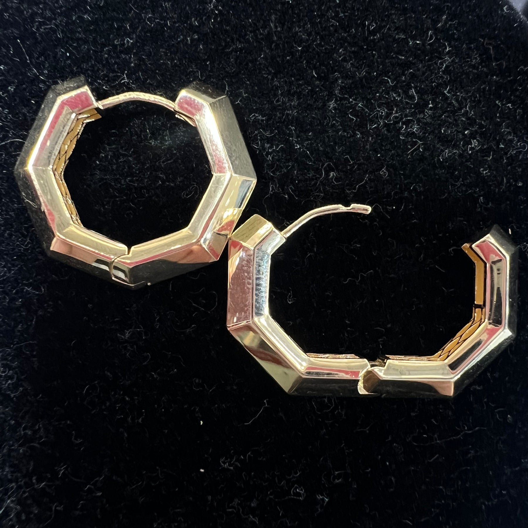14k yellow gold large chic octagonal huggies (Measures 23mm wide, 21.6mm long, 4.6mm thick)