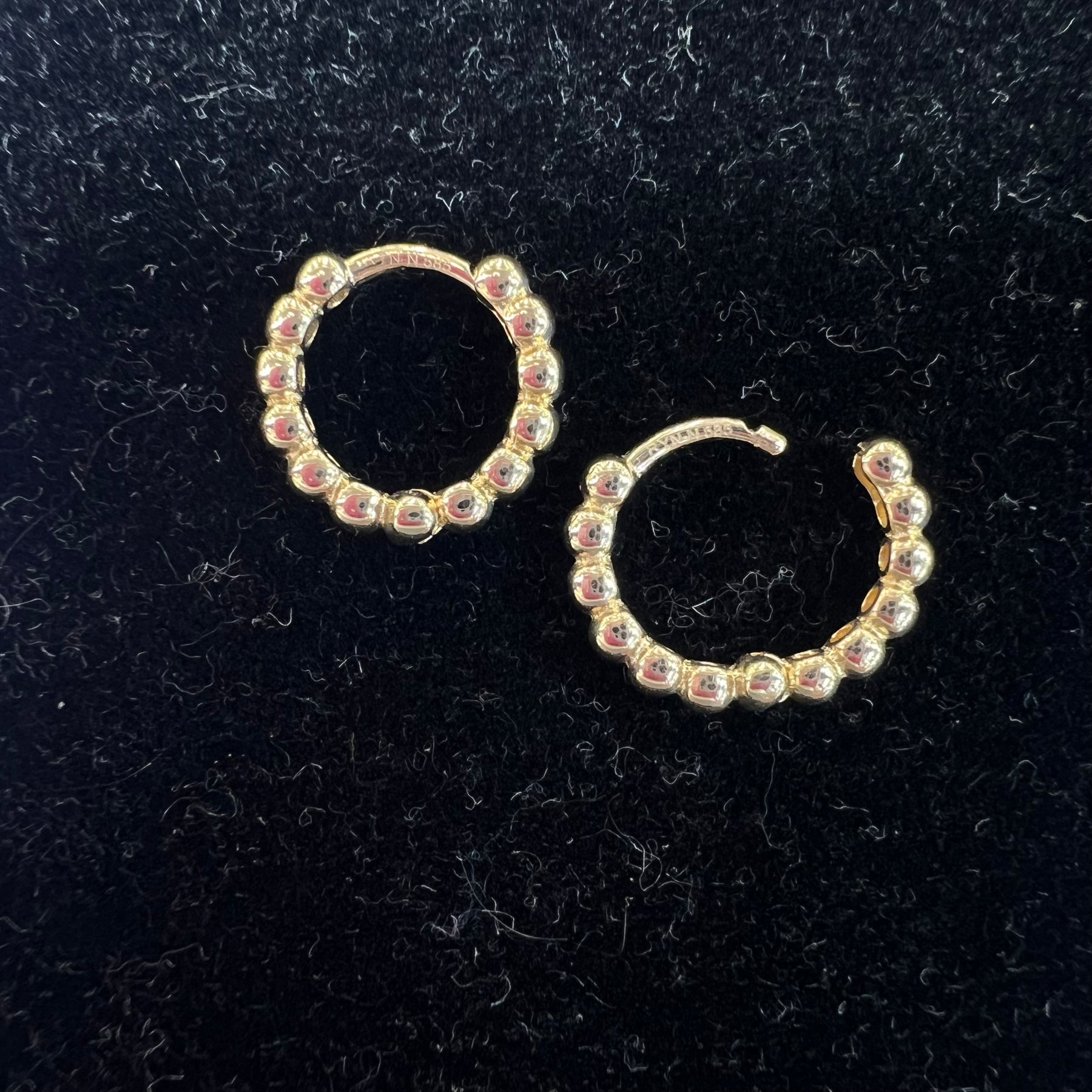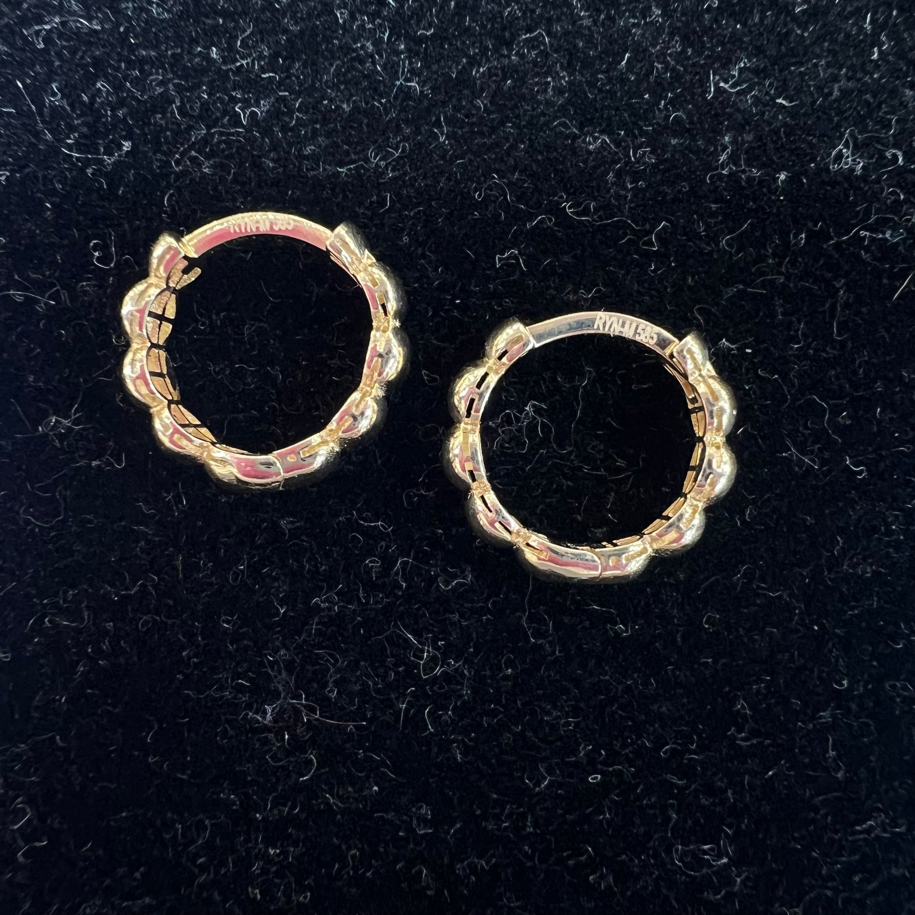 14k yellow gold mini bubble huggies (Measures 13.2mm wide, 12.7mm long, 3.3mm thick)